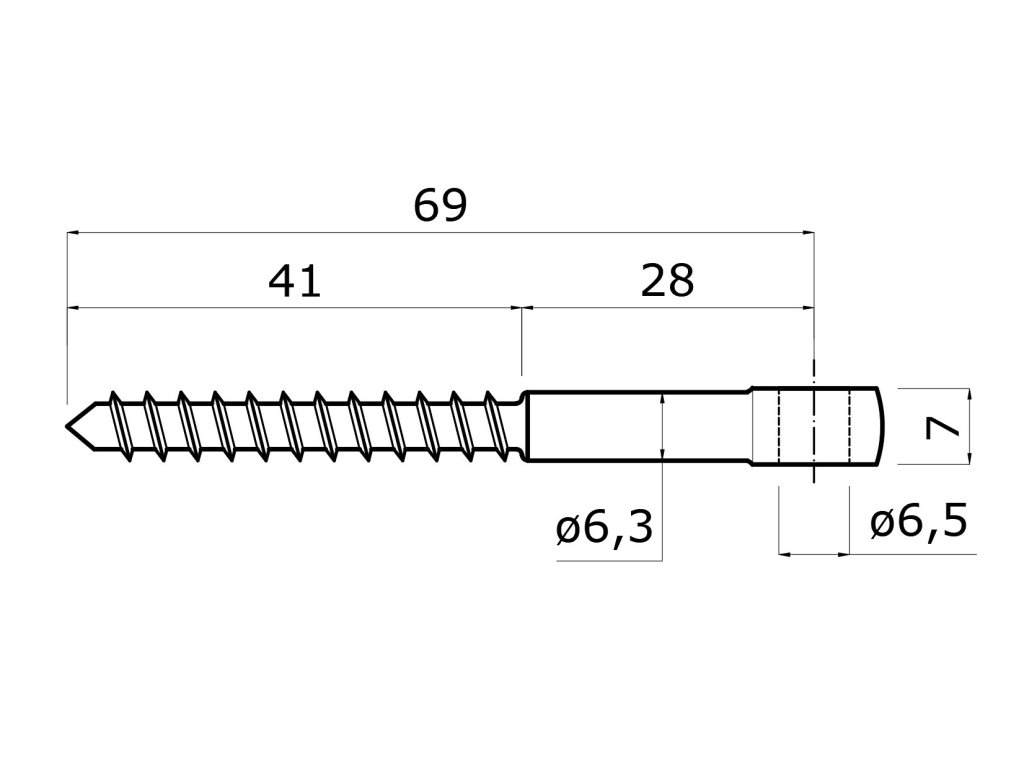 Úchyt do dřeva pro držák lanka, oko ø6.3mm, broušená nerez K320 /AISI304Doplňkové parametry
