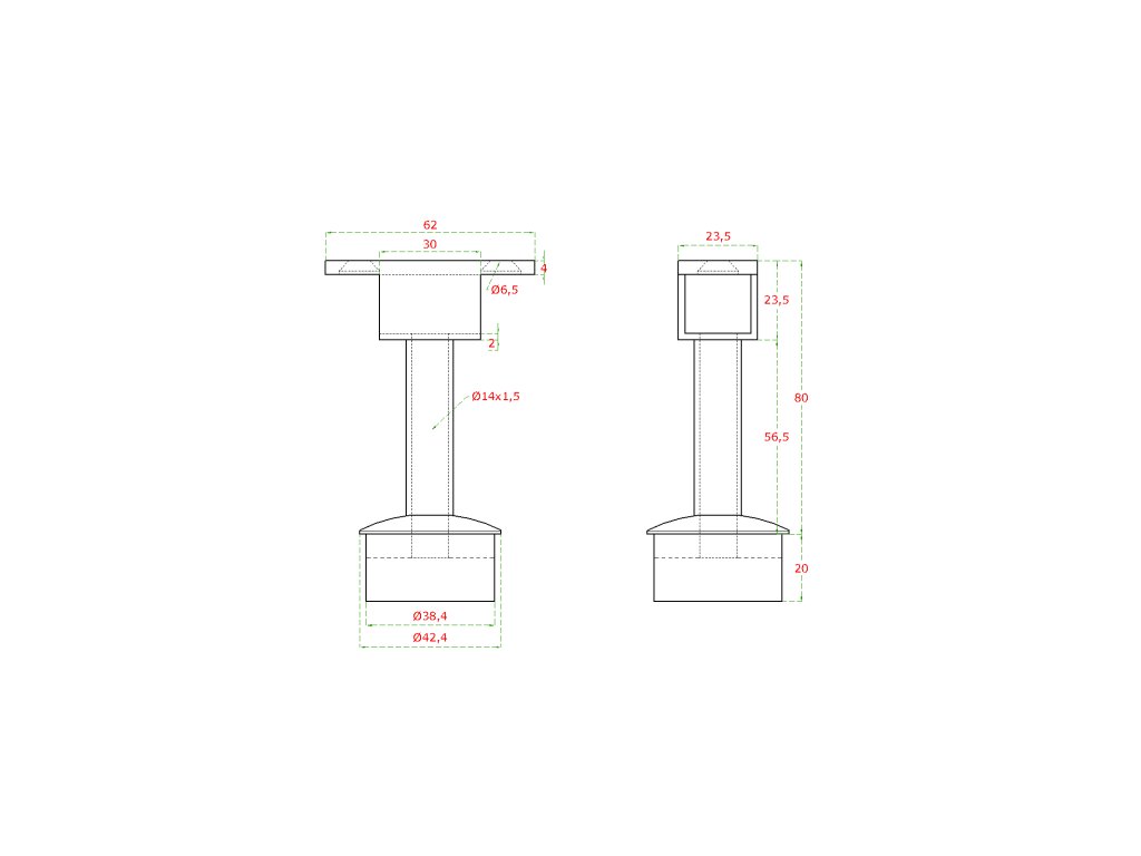 Držák LED madla pevný (14x1.5x64.5mm) na madlo EB1-HM42, EB1-JHM42, EB1-JHM60x40; broušená nerez K320/AISI304Doplňkové parametry