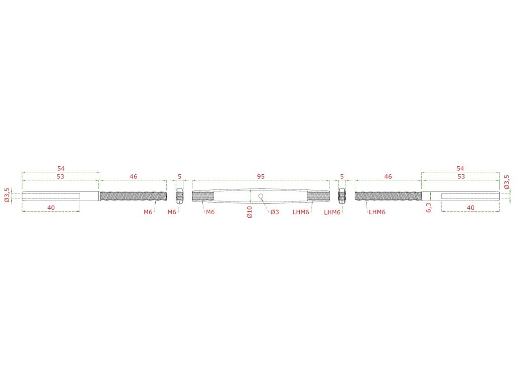 Lepicí úchyty, napínák pro nerezové lanko ø3 mm, se závitem M6 a LH6, broušená nerez K320 / AISI304Doplňkové parametry