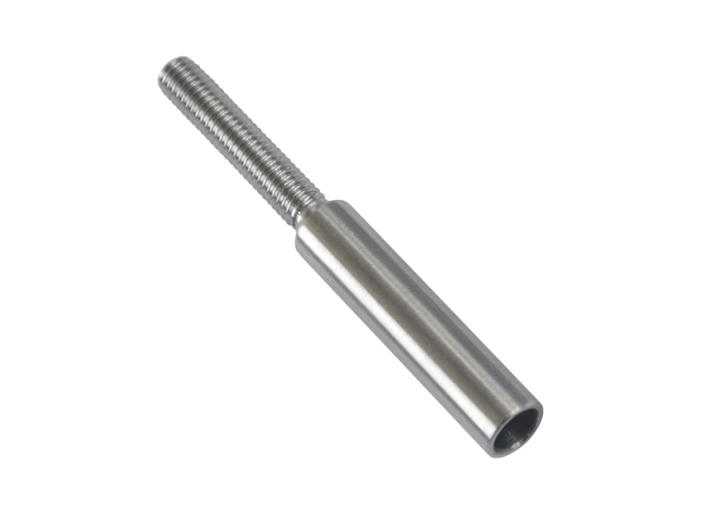 Úchyt (lepící) pro ocelové lanko ø 6 mm s vnějším závitem M6 x 30 mm, (ø 9 mm / L: 70 mm), broušená nerez K320 / AISI304, použít lepidlo MD-GEL454/20