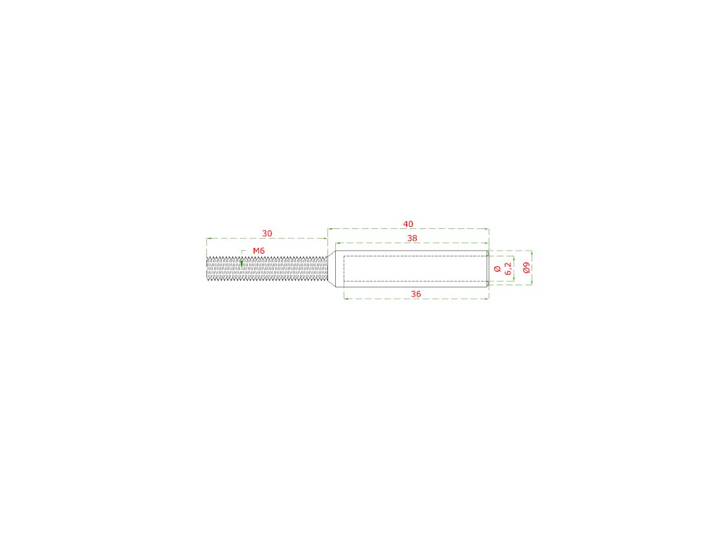 Úchyt (lepící) pro ocelové lanko ø6 mm s vnějším závitem M6 x 30 mm, (ø9 mm / L: 70 mm), broušená nerez K320 / AISI304, použít lepidlo MD-GEL454/20Doplňkové parametry