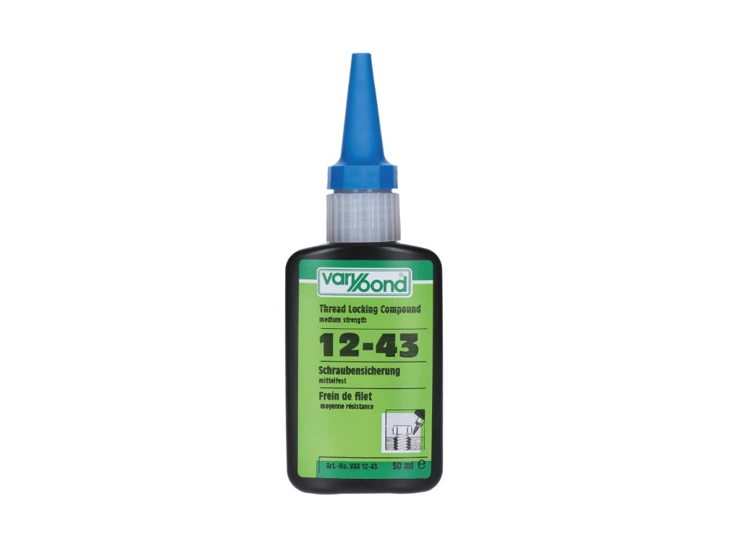 VARYBOND 12-43 zajišťovač závitů (střední pevnost)Univerzální produkt pro rozmanité aplikace vyznačující se vynikající tepelnou stabilitou a odolností vůči médiím. Je také vhodný pro jemné závity. Zvláště vhodný pro použití nerezovými a kovovými spojovacími prvky. Díky vyšší viskozitě dobře vyplňuje mezery. Rychle tvrdne, a to i na nerezových a pasivovaný površích.