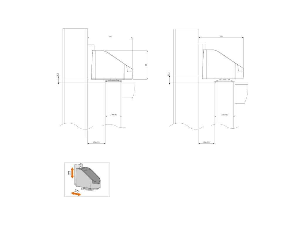 Nastavitelný závěs: 35 mm na šířku (X), 22 mm na výšku (Y)