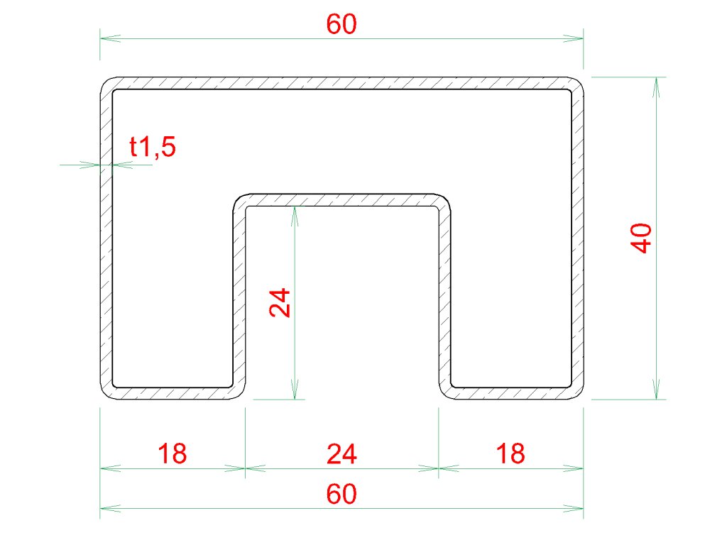 Madlo obdélníkové (60x40x1,5 mm /24x24 mm), cena za 1 ks (1 m), pro sklo 8-17,5 mm, bez gumových těsnění, broušená nerez K320 / AISI304Doplňkové parametry
