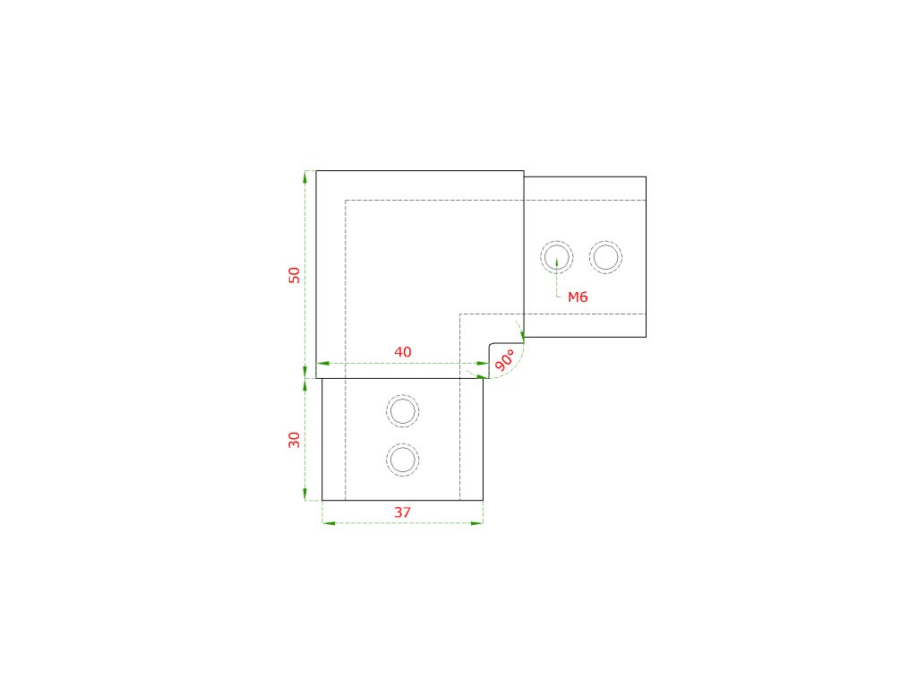 Přechod - koleno 90° (40x40x1,5 mm) na madlo EB1-JHM40, lepený spoj, broušená nerez K320 / AISI304Doplňkové parametry