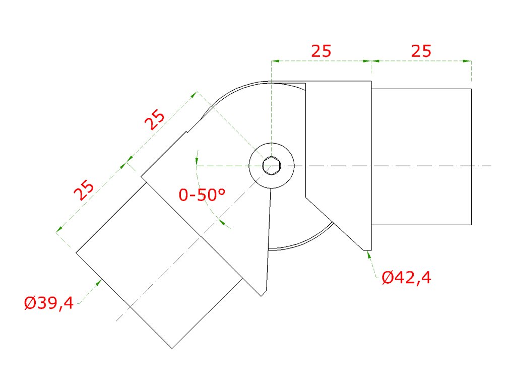 Do vyprodání zásob: přechod nastavitelný - koleno s kloubem (ø 42.4x1.5mm) na trubku ø42.4mm, narážecí spoj, broušená nerez K320 /AISI304