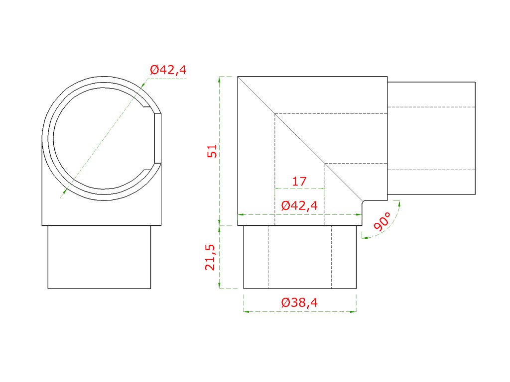 Do vyprodání zásob: spojka - koleno 90° (ø 42.4x1.5mm) na trubku ø42.4mm, lepený spoj, broušená nerez K320 /AISI304