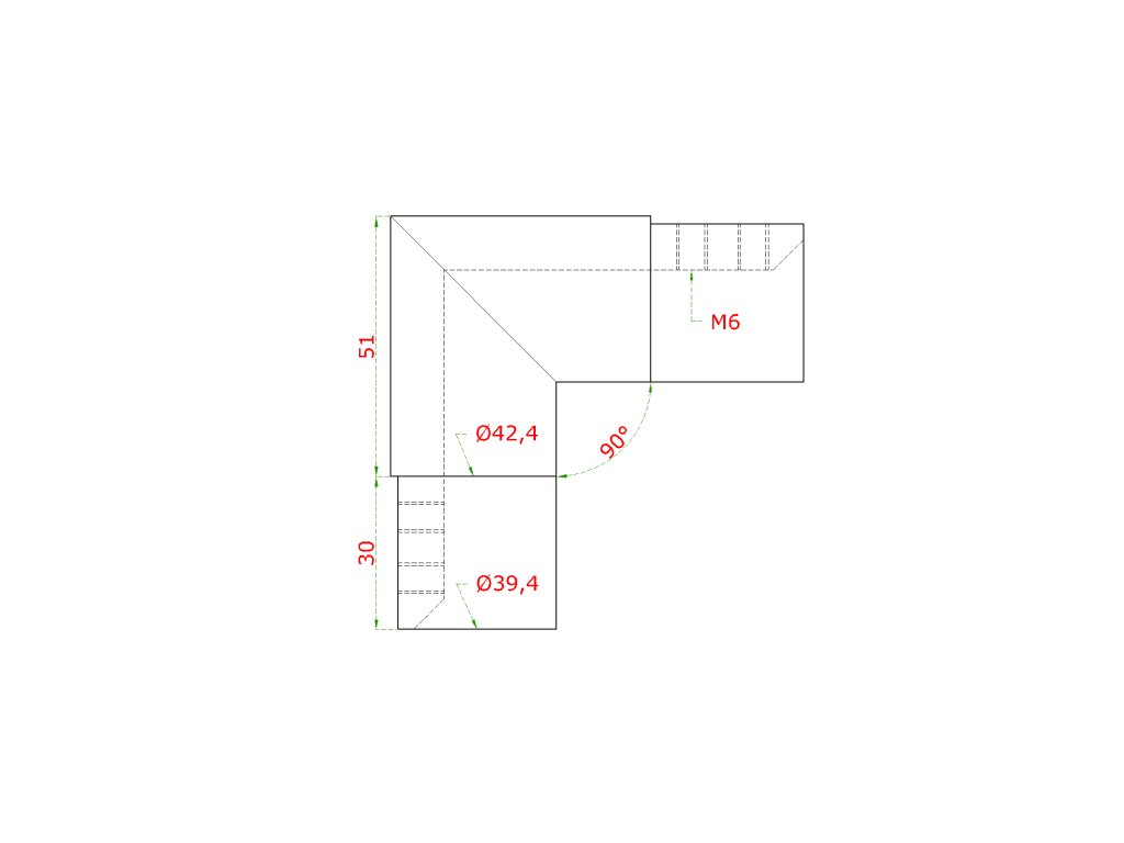 Přechod - koleno 90° (ø 42.4x1,5 mm) na madlo EB1-HM42, lepený spoj, broušená nerez K320 / AISI304Doplňkové parametry