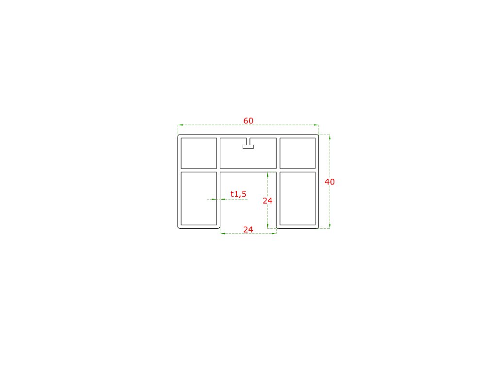 Madlo (60x40x1,5 mm / 24x24 mm) pro sklo 8-17,5 mm, bez gumových těsnění, hliník, uváděná cena za délku 5000 mmDoplňkové parametry