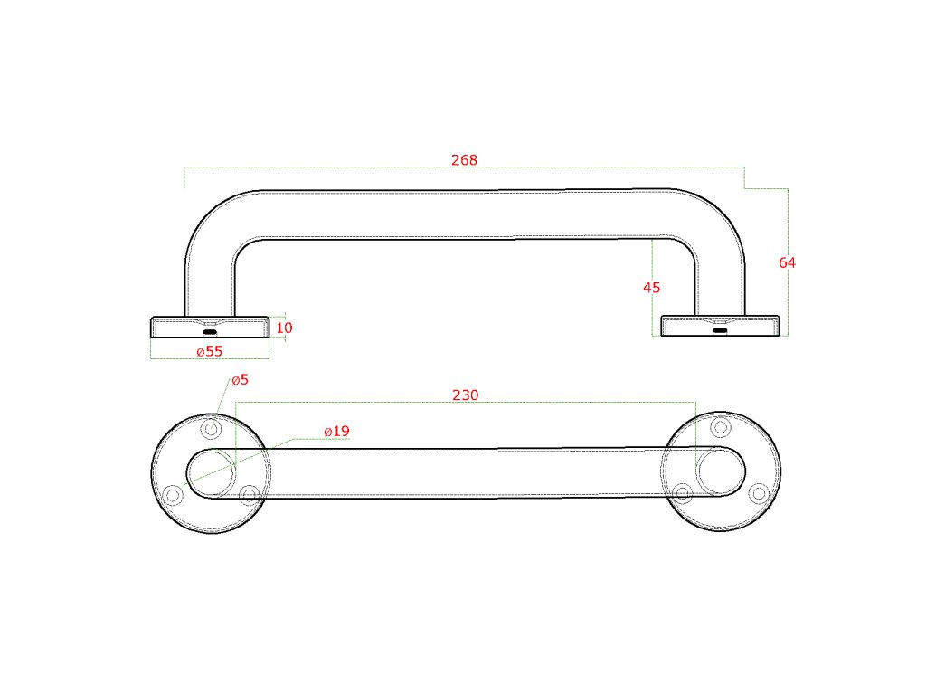 Nerezové madlo (268x64 mm / ø 19mm), broušená nerez K320 / AISI304