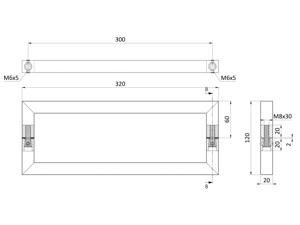 nerezové madlo (300x60x0.8mm / 20x20mm), broušená nerez K320 /AISI304