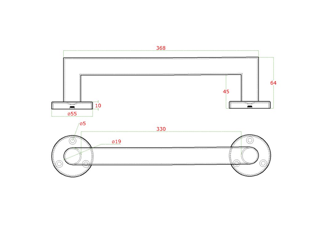 Nerezové madlo (368x64mm /ø 19mm), broušená nerez K320 /AISI304