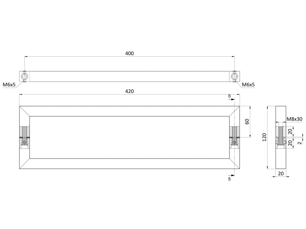 nerezové madlo (400x60x0.8mm / 20x20mm), broušená nerez K320 /AISI304