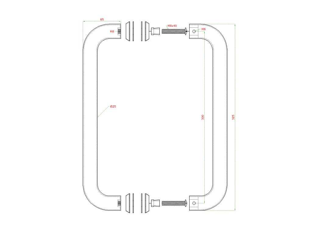 Nerezové madlo na dveře (325 mm / ø 25 mm), na sklo 8-12 mm, broušená nerez K320 /AISI304