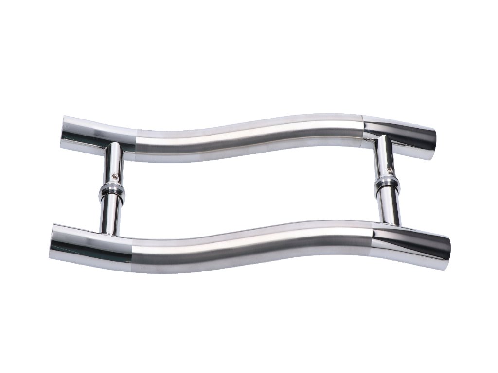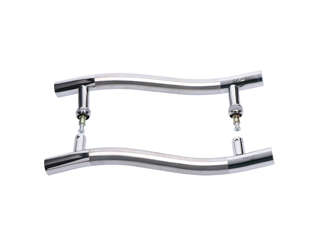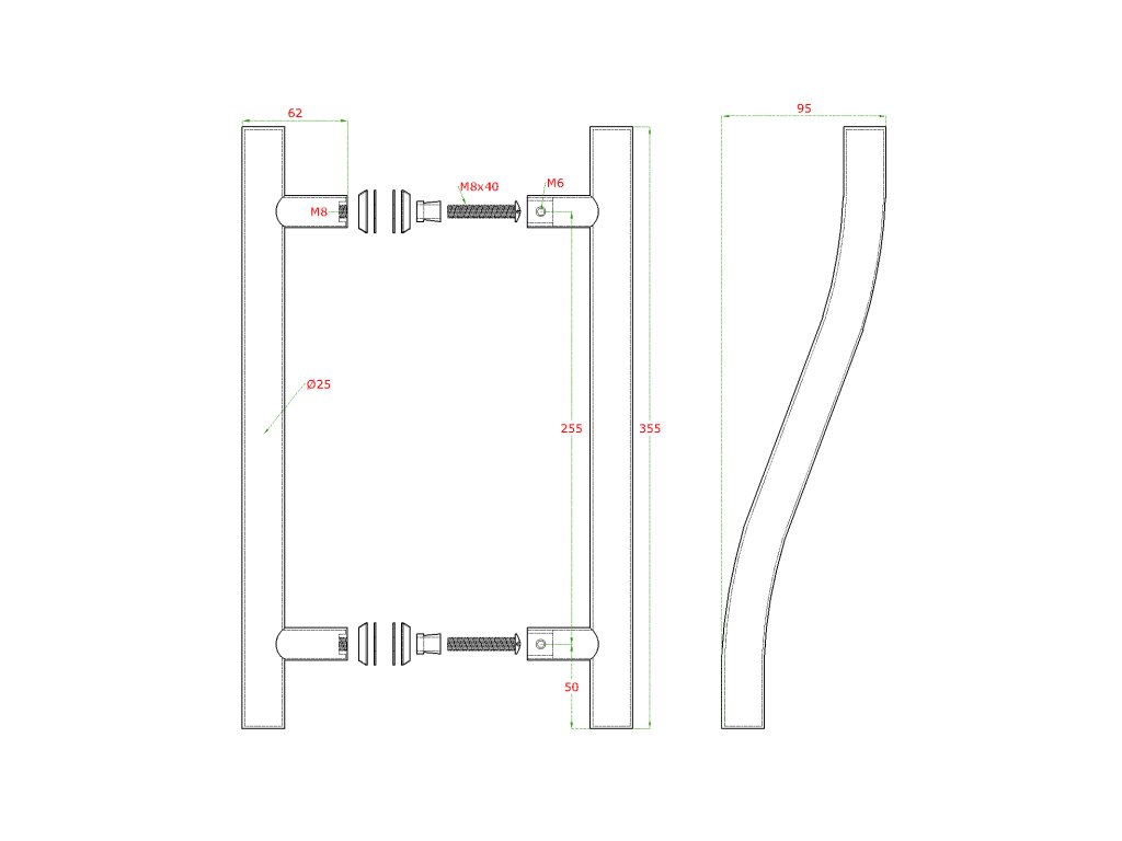 Nerezové madlo na dveře (355mm / ø 25mm), na sklo 8-12mm, leštěná / broušená nerez K320 /AISI304