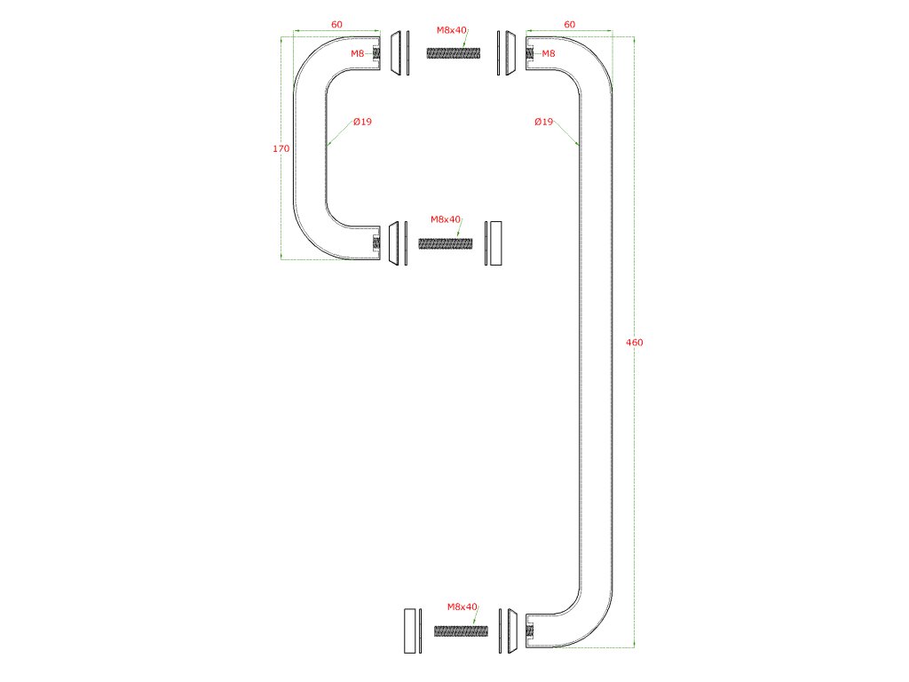 Nerezové madlo na dveře (460mm / ø 19mm), na sklo 8-12mm, broušená nerez K320 /AISI304