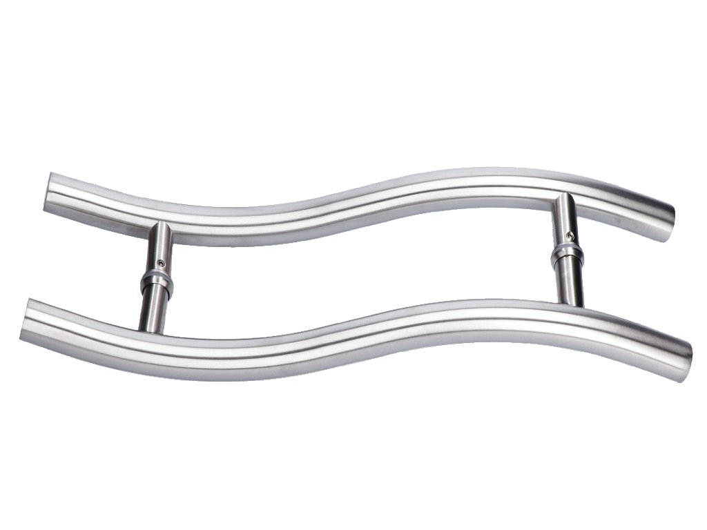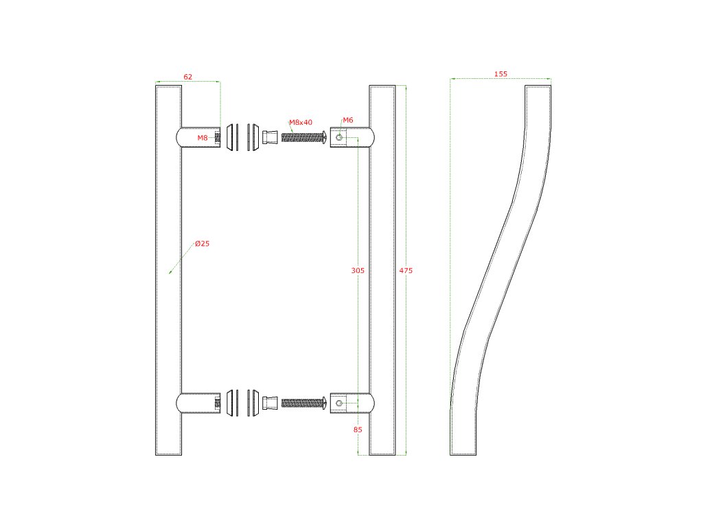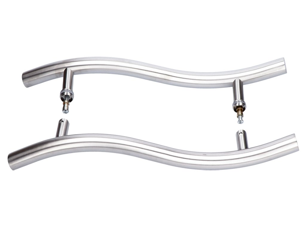 Nerezové madlo na dveře (475mm / ø 25mm), na sklo 8-12mm, leštěná / broušená nerez K320 /AISI304