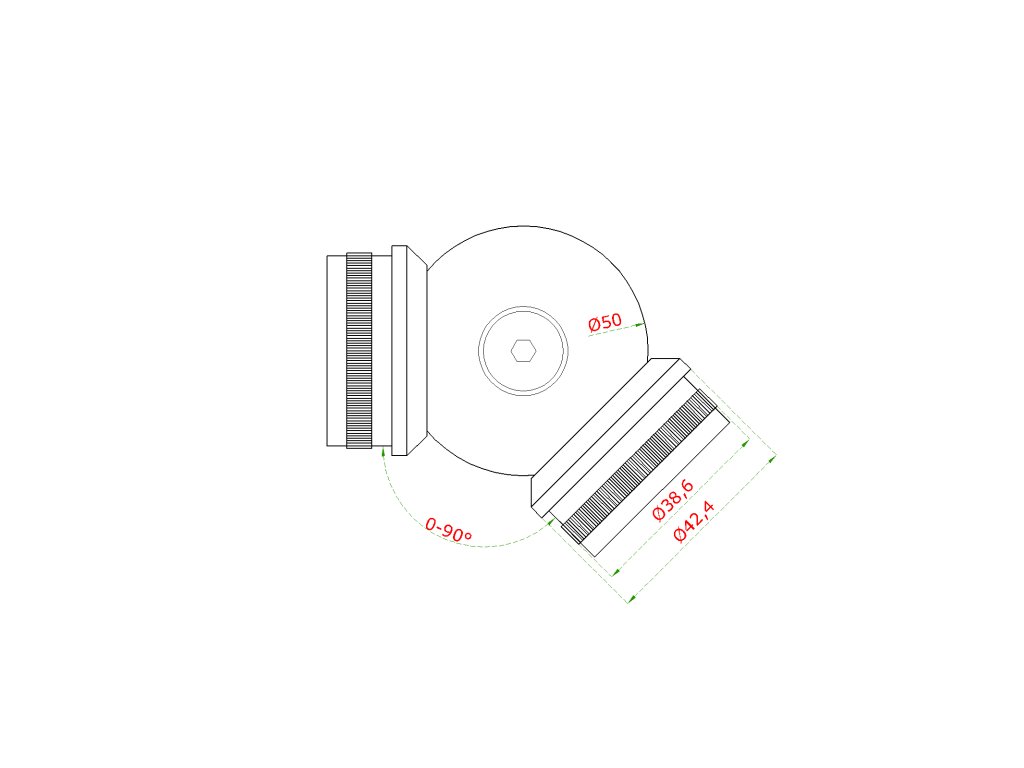 Spojka nastavitelná s kloubem (90° - 180°) na trubku ø 42,4 mm, broušená nerez K320 / AISI304Doplňkové parametry