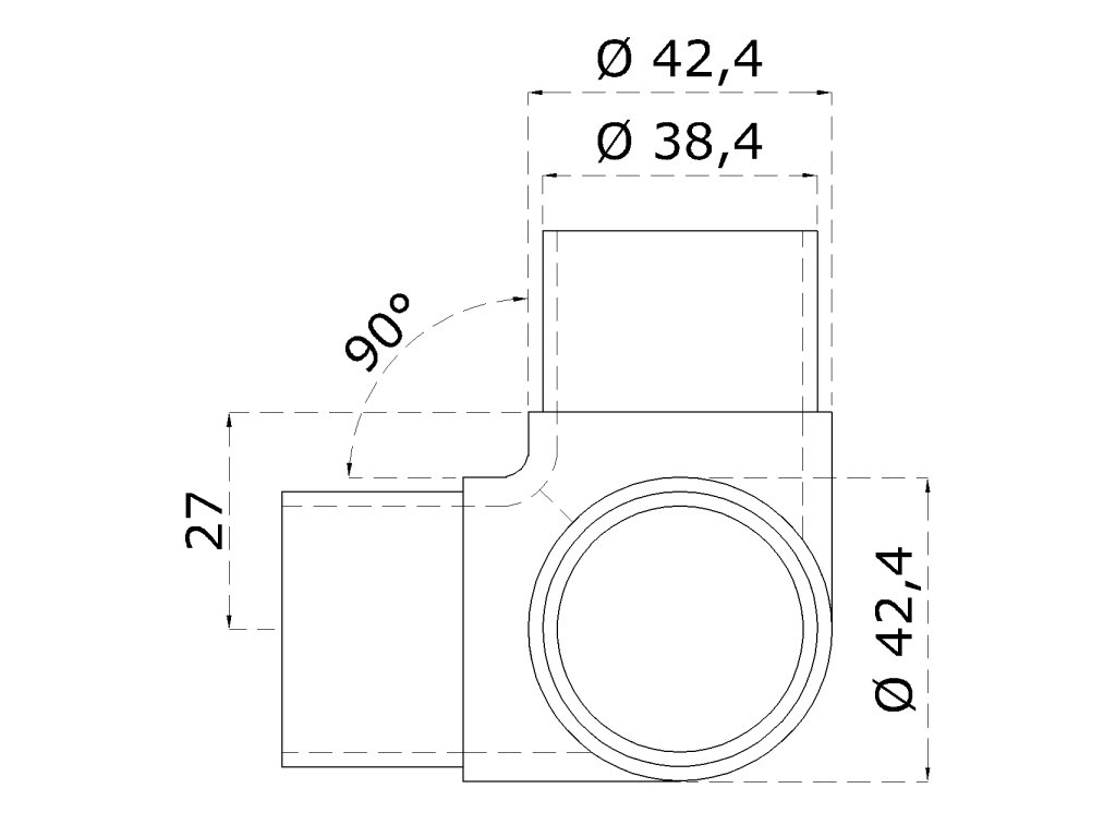 Spojka - přechod 90° na trubku ø 42,4 mm, broušená nerez K320 / AISI304Doplňkové parametry
