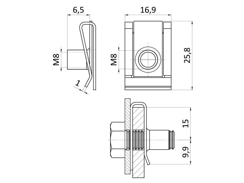 Klipová matice na plech / samosvorná matice M8/0.5-4.0//24.3x17