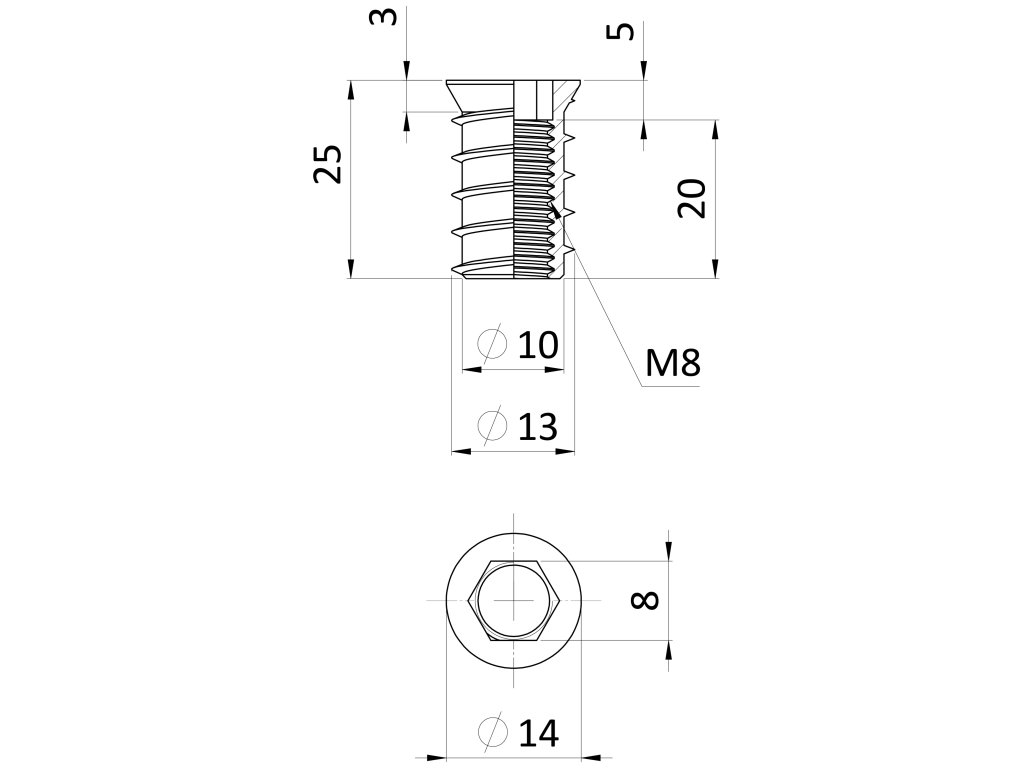 Závrtná matica M8x24 s vnútorným metrickým závitom a imbus šesťhranom, poniklované
