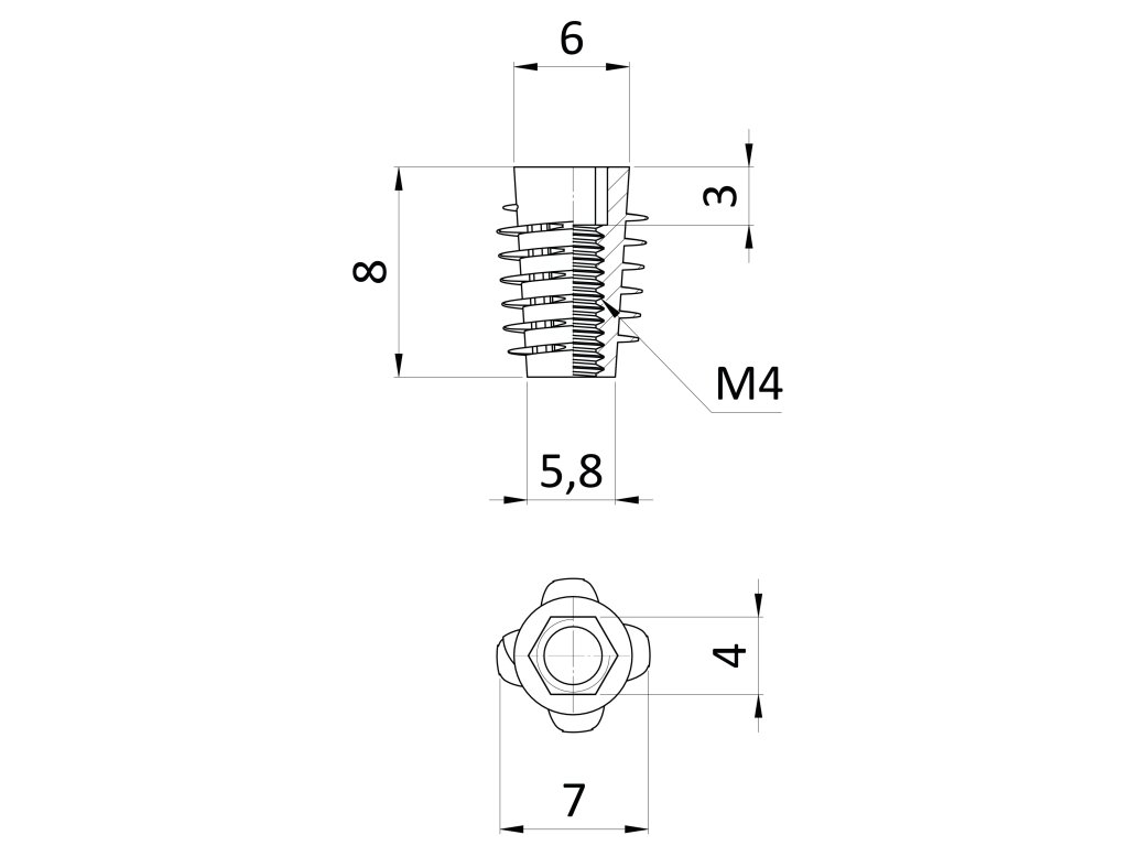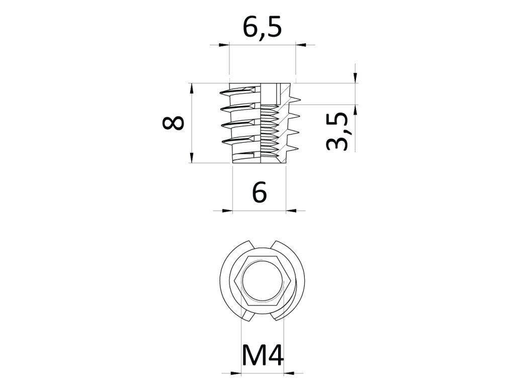 Závrtná matice M4x8 bez límce s vnútorným metrickým závitem a imbus šestihranem, zinková slitina