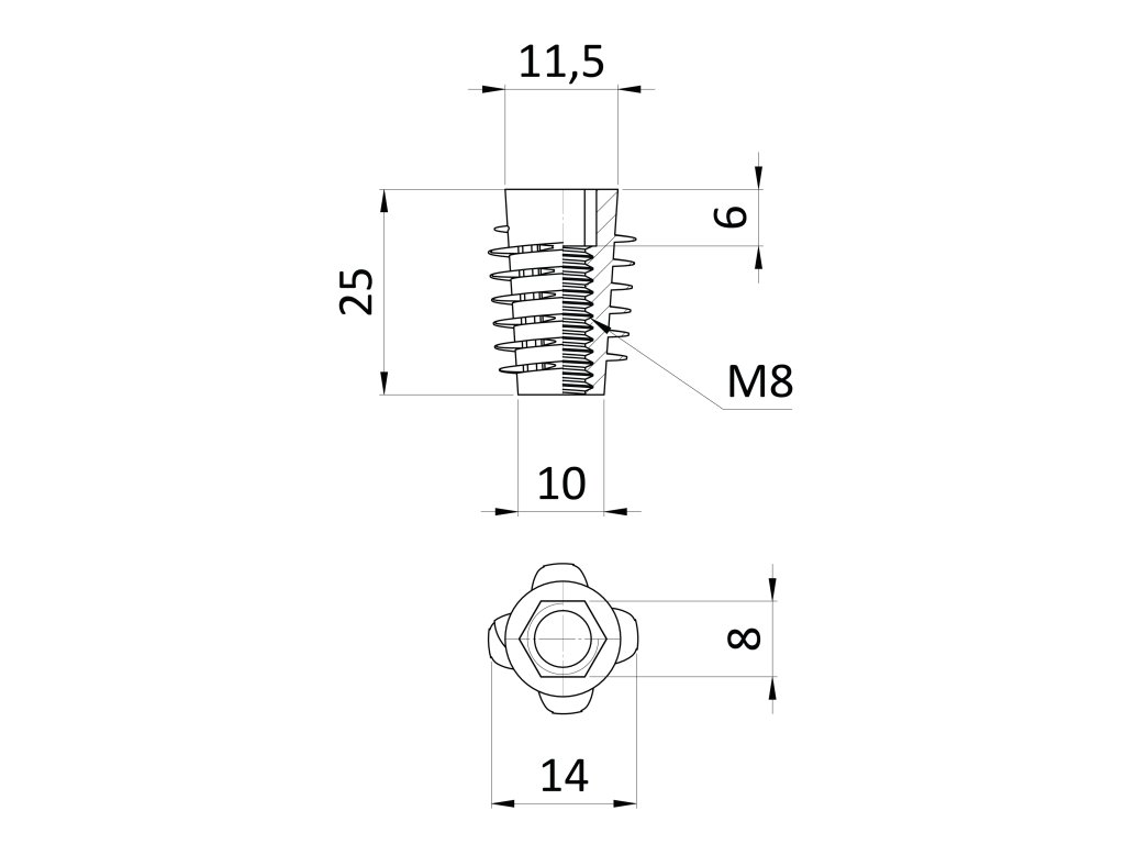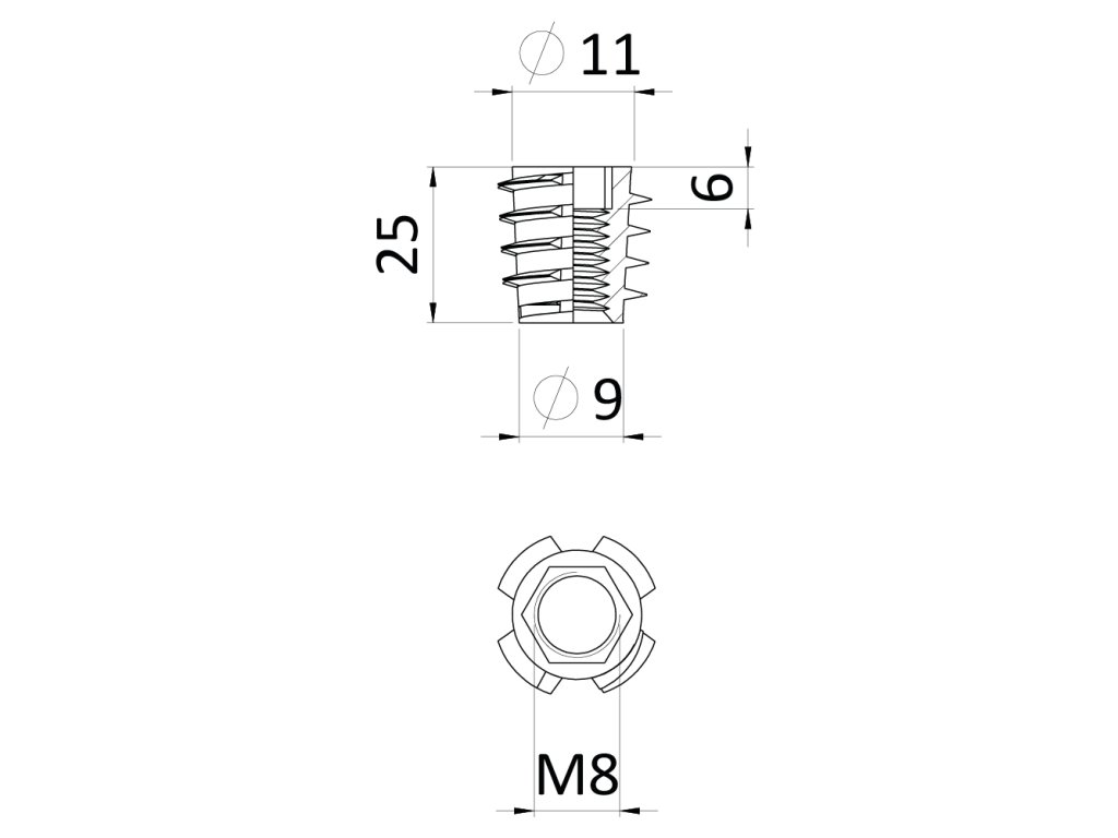 Závrtná matice M8x25 bez límce s vnútorným metrickým závitem a imbus šestihranem, zinková slitina