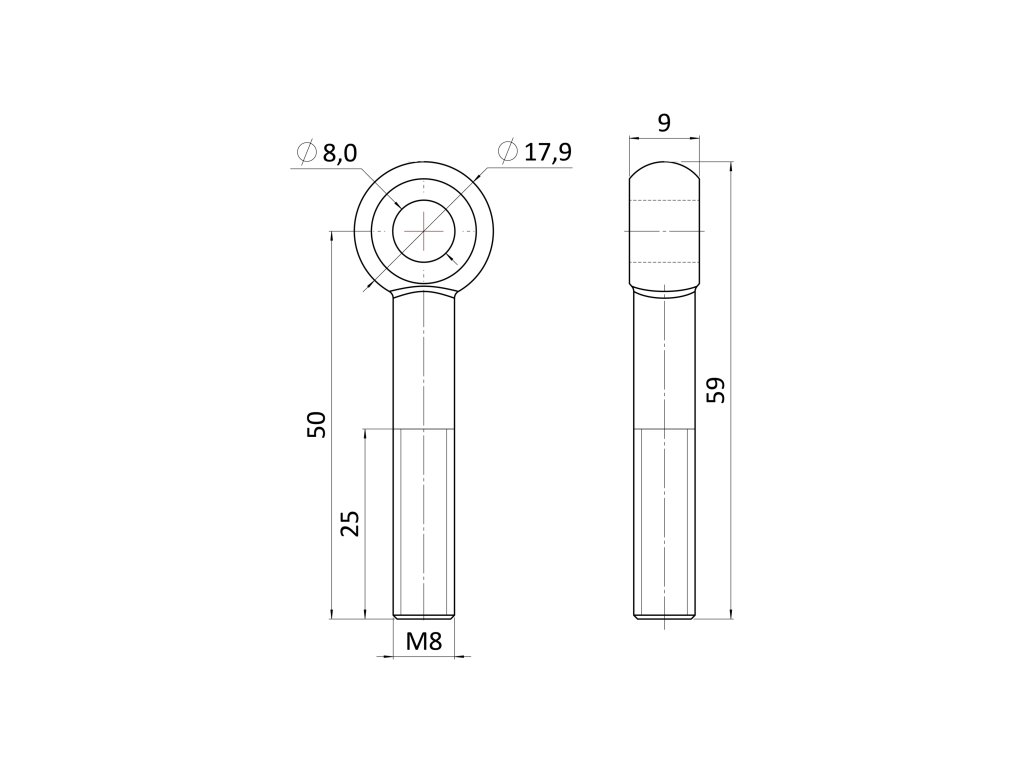 Úchyt s okem pro držák lanka, metrický závit, DIN444, M8x50 mm, částečný závit, AISI304Doplňkové parametry