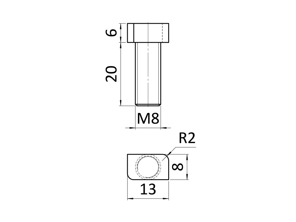 T‑šroub M8×20, RHS pro Solar‑fish nerez A2