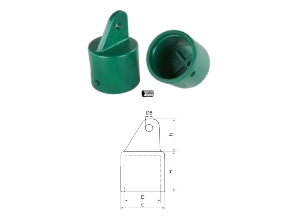D-48,3 mm, C-60,9 mm, H-60,9 mm, h-60,9 mm, tvrzený plast PA, krytka na plotové sloupky, kulatá,