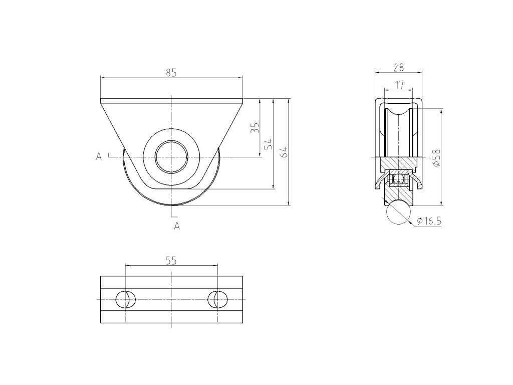 vodící kladka ø 60mm s opěrou, pro profil C902/16