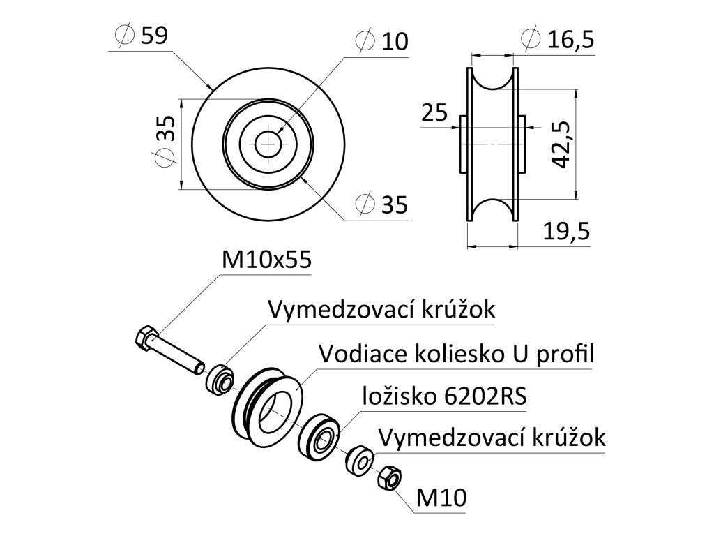 vodící kolečko ø 60mm jednoložiskové, pro profil C902/16