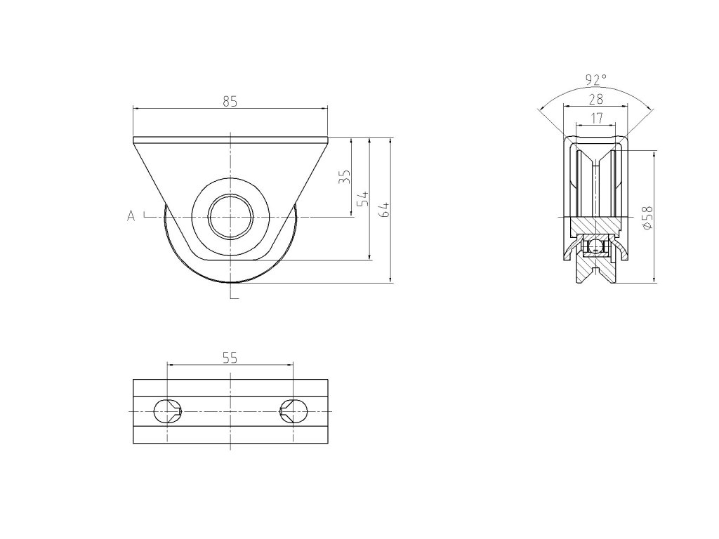 vodící kladka ø 60mm s opěrou, V profil