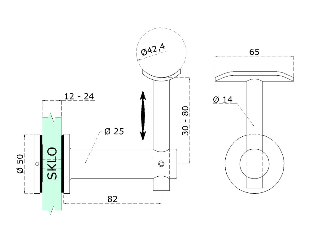Držák madla pevný na trubku ø 42.4mm, broušená nerez K320 / AISI304