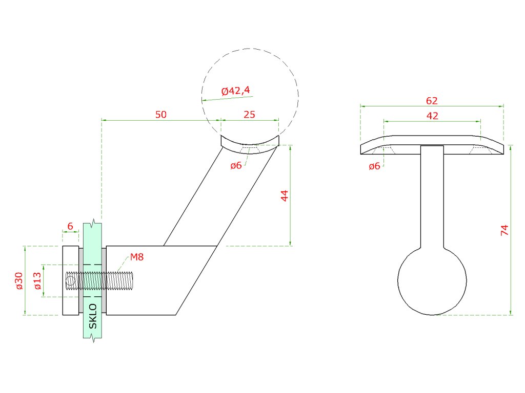 Držák madla pevný na trubku ø 42.4mm, s uchycením na sklo 6-21.52mm, broušená nerez K320 /AISI304