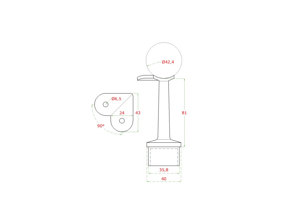 Držák madla pevný - rohový, na madlo trubku 42,4mm, broušená nerez K320 /AISI304Doplňkové parametry
