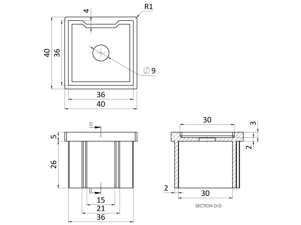 Držák madla, jokl 40x40x2.0mm, na jokl 40x40mm, broušená nerez K320/AISI304