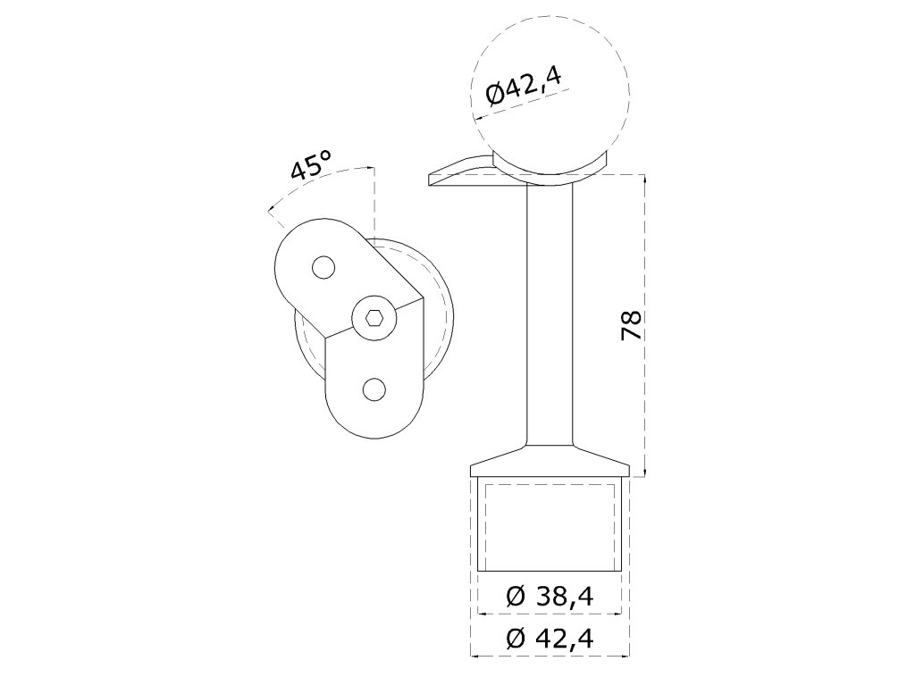 Držák madla pevný na trubku ø 42,4 mm (78x64 mm, 45° úhel), broušená nerez K320 / AISI304Doplňkové parametry