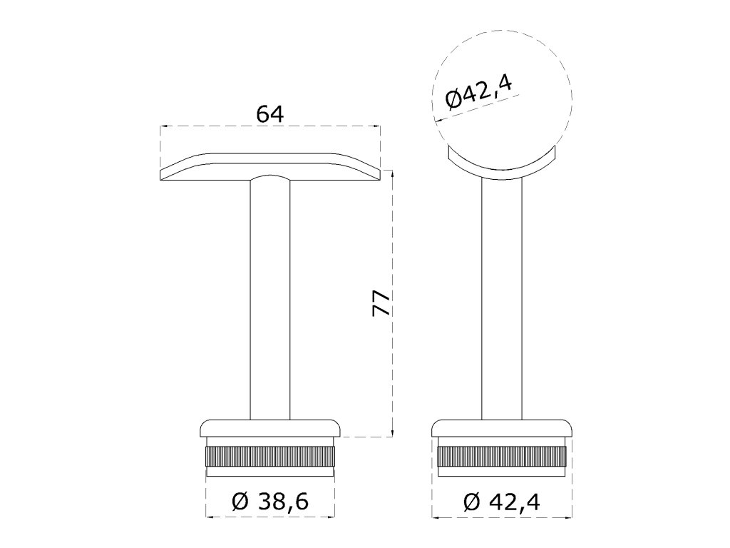 Držák madla pevný na trubku ø 42,4 mm (77x64 mm), broušená nerez K320 / AISI304Doplňkové parametry