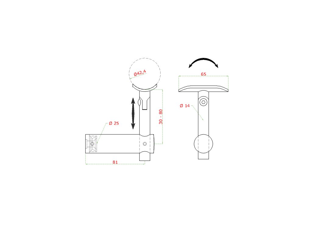 Držák madla s kloubem /ploché uchycení na jekl /madlo ø 42.4 mm, broušená nerez K320 /AISI304Doplňkové parametry