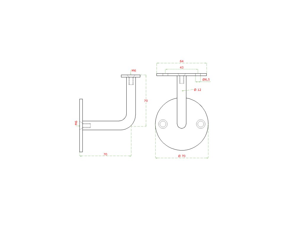 Držák madla na stěnu na jekl, zadní vnítřní závit M6, broušená nerez K320 /AISI304Doplňkové parametry
