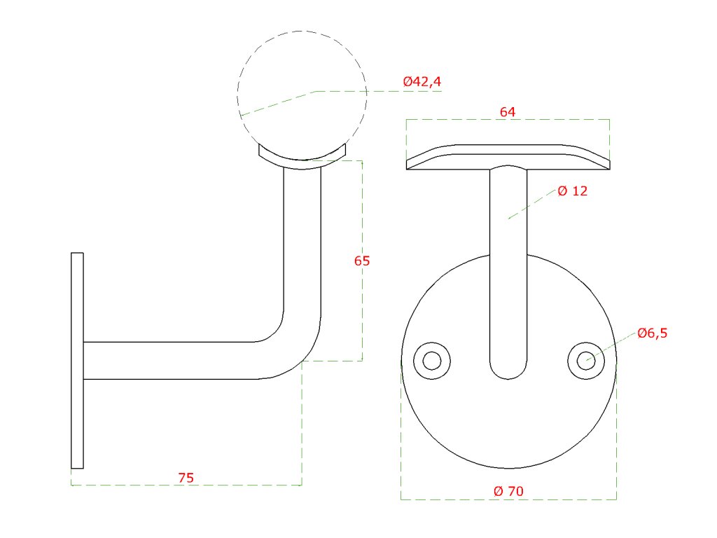 Držák madla na stěnu na trubku ø 42,4 mm, broušená nerez K320 / AISI316Doplňkové parametry