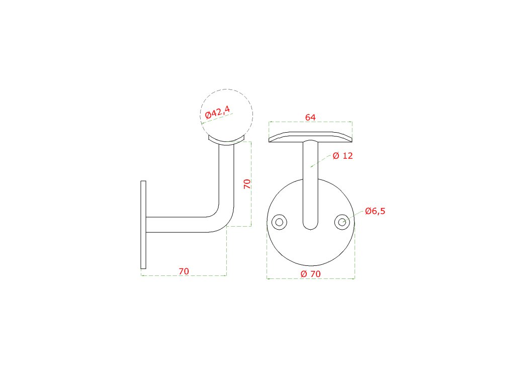 Držák madla na stěnu na trubku ø 42,4 mm, broušená nerez K320 / AISI304Doplňkové parametry