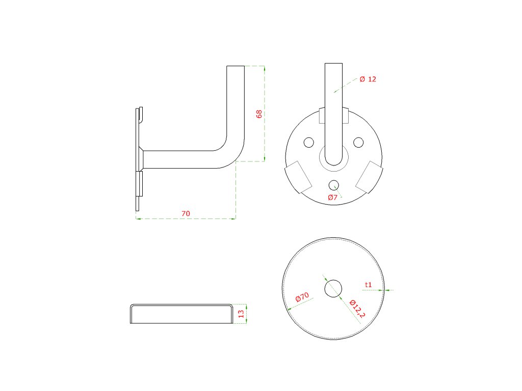 Držák madla na stěnu s krytkou kotvící desky, broušená nerez K320 / AISI304Doplňkové parametry