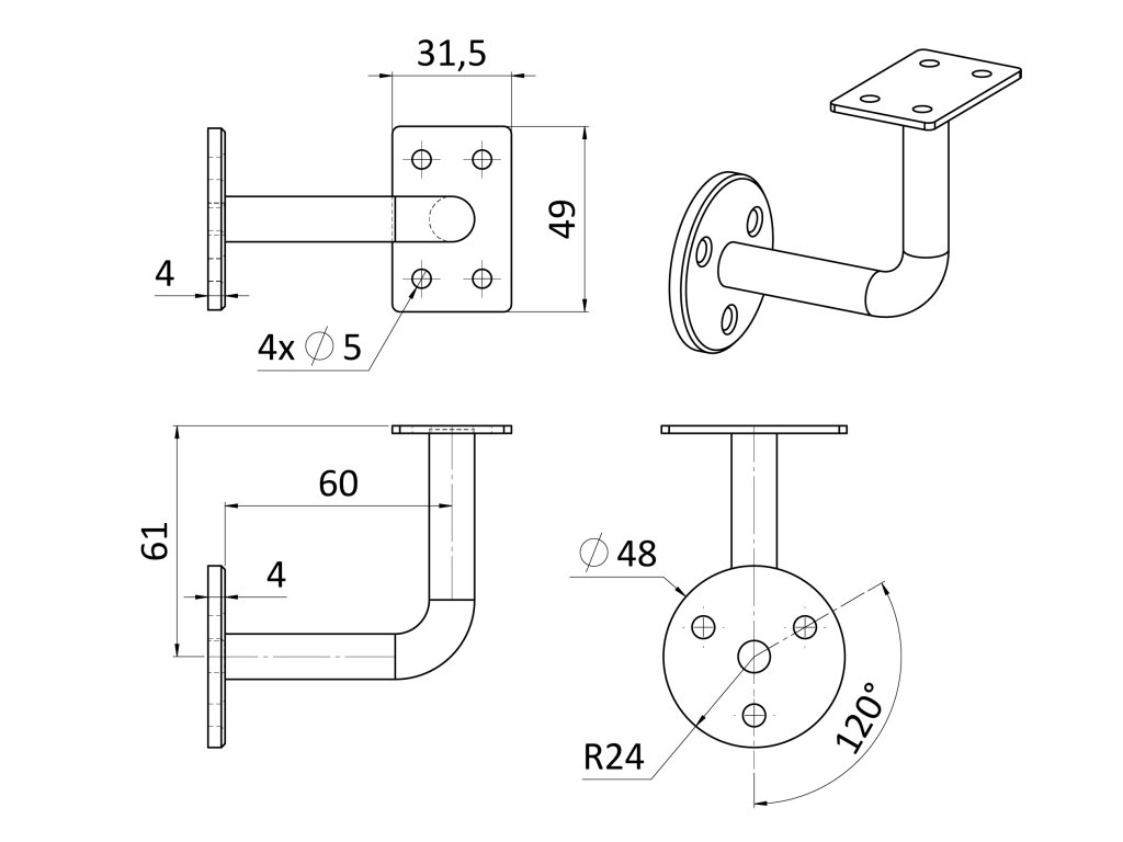 Držák madla na stěnu na jekl, broušená nerez K320 / AISI304Doplňkové parametry