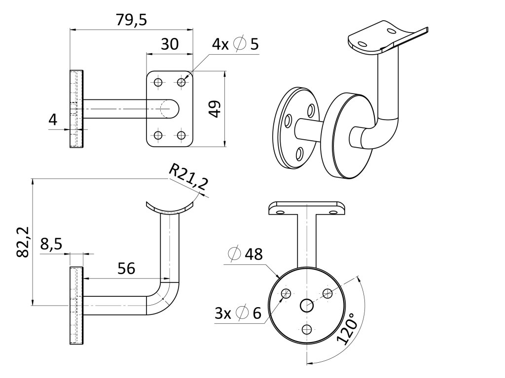 držák madla se zkrácenou vzdáleností od zdi - na trubku ø 42.4mm s krytkou, broušená nerez K320 /AISI304