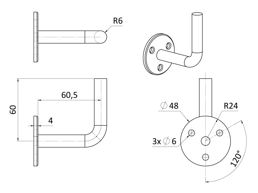 držák madla se zkrácenou vzdáleností od zdi - navařovací, broušená nerez K320 /AISI304