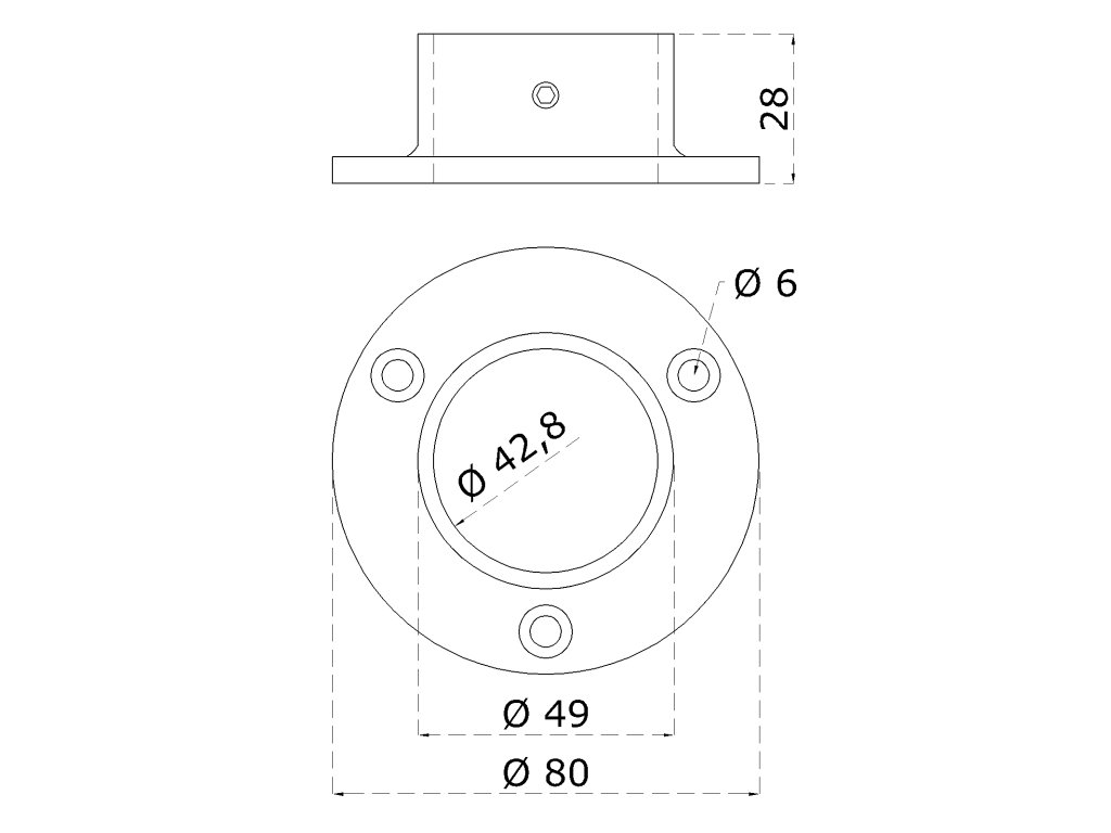 Příruba madla (ø 80x25 mm) na trubku ø 42,4 mm, broušená nerez K320 /AISI304Doplňkové parametry