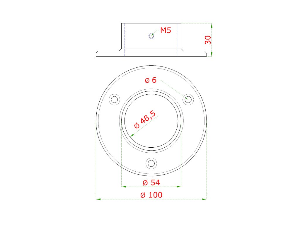 Příruba spodní (ø 100 mm) na trubku ø 48,3 mm, broušená nerez K320 / AISI304Doplňkové parametry