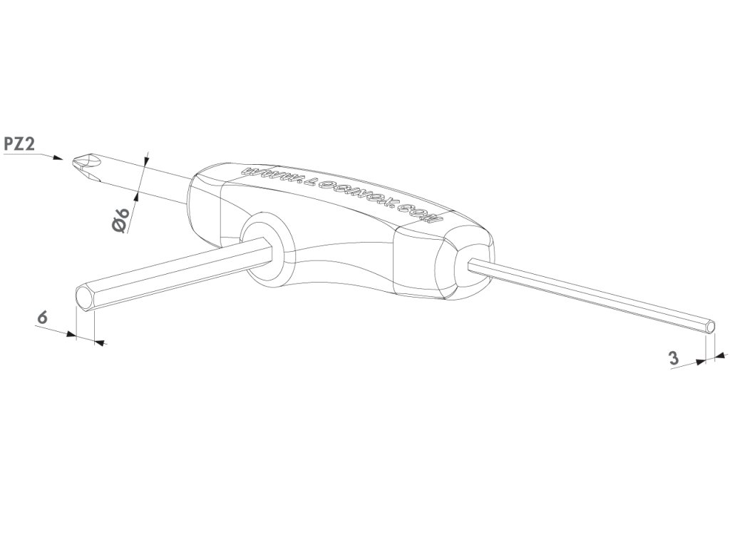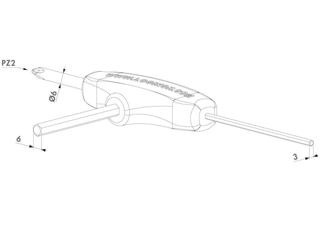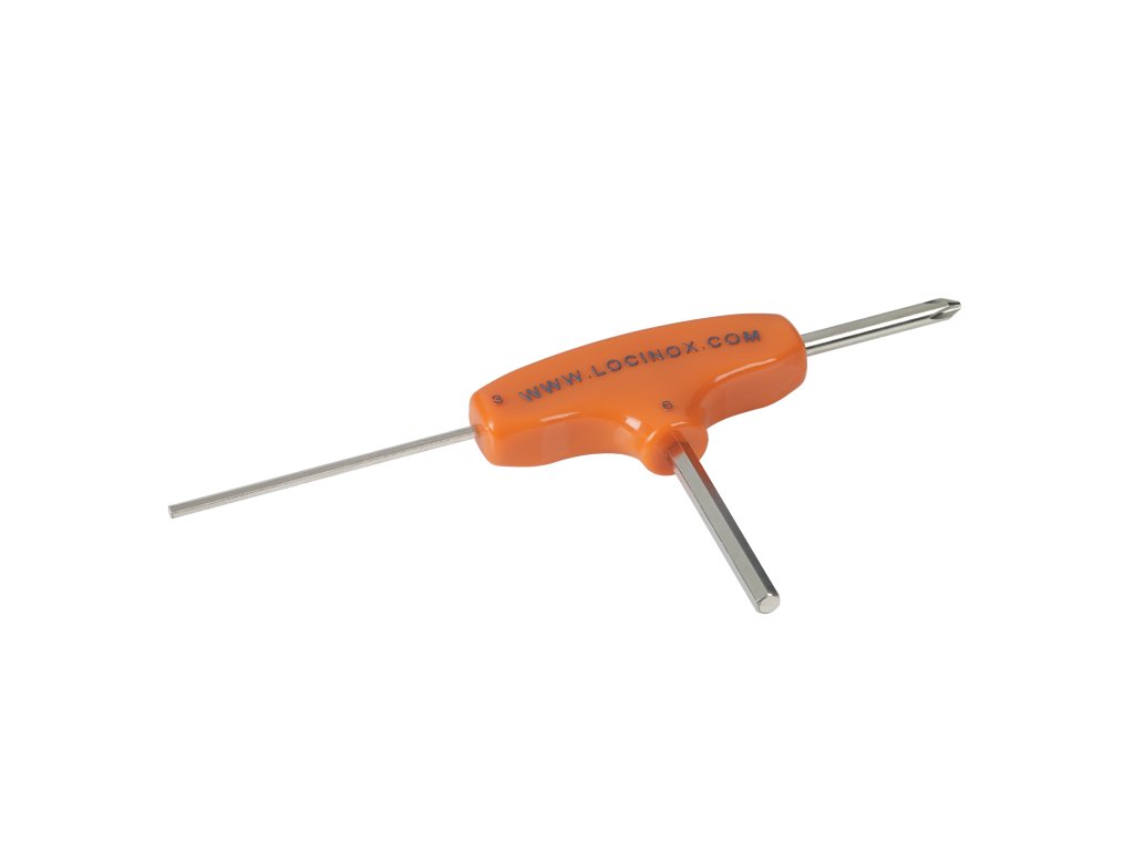 Multifunkční montážní nářadí 3v1 obsahuje všechny potřebné nástroje pro montáž kompletního sortimentu zámků dodávaného firmou LOCINOX® .HEX 3 mm imbusový klíč pro nastavení šroubů a upevnění rukojetí.